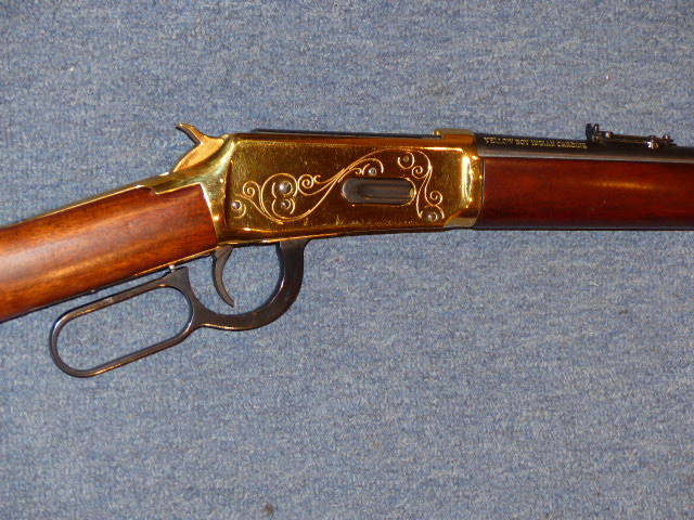 Sammlerstück Winchester UHR Mod. 1894 (Yellow Boy) cal. 30-30. Die Waffe ist in sehr gutem Zustand (siehe Bilder) und ohne weiteres Zubehör. Der Schaft hat hinten ein Paar Lagerspuhren. Den Export führt für uns z.B. die Fa. Waffen-Bock oder ein Händler Ihrer Wahl durch. Bei Fragen Tel. 06031/ 79 15 283