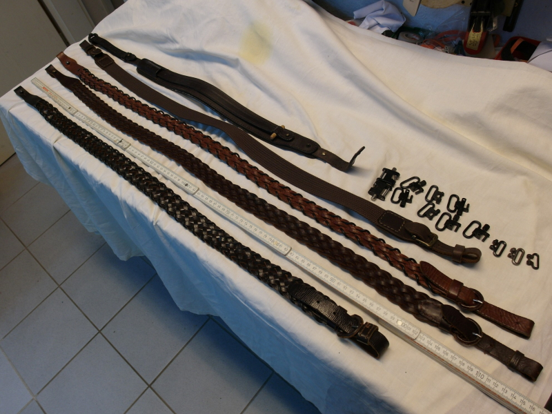 Diese gebrauchten Gewehrriemen sind alle in gutem, der Gurtriemen in neuwertigem Zustand. Der Lederriemen rechts oben im Bild ist ein Luxusteil, verlängerbar, als Schießauflage verkürzbar, mit rutschfester Unterlage in gutem Zustand. Siehe Fotos, auch wegen der Länge. Alles Leder ist geschmeidig, nichts ist brüchig, sofort einsetzbar.