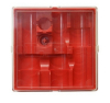 Flache Box aus strapazierfähigem rotem Kunststoff, fasst drei Matrizen.