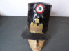 Aus meiner Sammlung gebe ich, ein alten unbekannten hohen Tschako mit Schirm aufgesetzten Adler aus Blech und Nationale ab. Kenner werden es sicherlich wissen was das für ein Tschako ist. Wahrscheinlich aus Originalteilen für Film und Fernsehen zusammengebaut worden. Korpus Innen verstärkt mit Pappe, außen Leder ähnlich Gelacktes Leinen? Vorne angebrachte Auflage aus geprägten Messingblech Adler und Nationale. Mit etwas Geschick kann man das Teil sicherlich wieder Herrichten. Alles andere entnehmen Sie Bitte den Fotos. Kann zu jederzeit bei mir besichtigt werden. Privatauktion keine Rücknahme und Garantie.