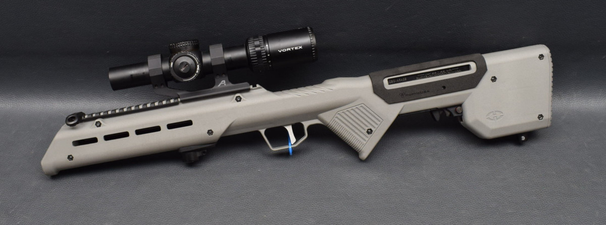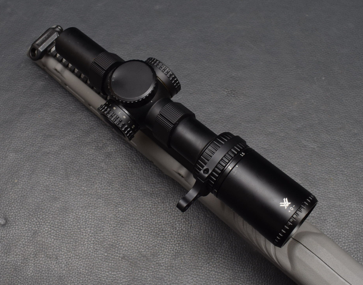 Knopfsicherung am Abzugsbügel, Montiert mit Zielfernrohr Vortex Viper PST 1-6x24Leuchtpunkt mit