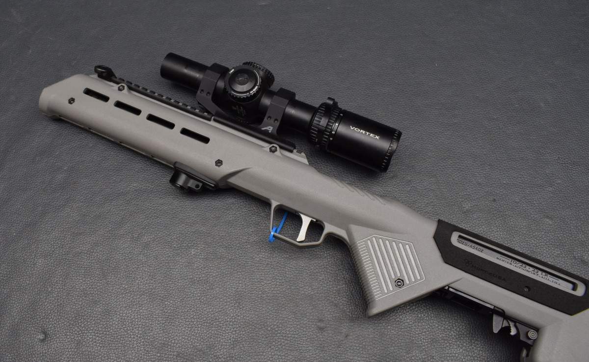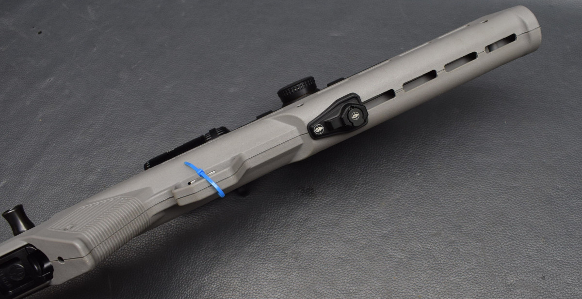 Lauf mit Gewinde, 25 cm lange Picatinny-Schiene, Masse-Verschluss, , 10-Schuss Magazin.