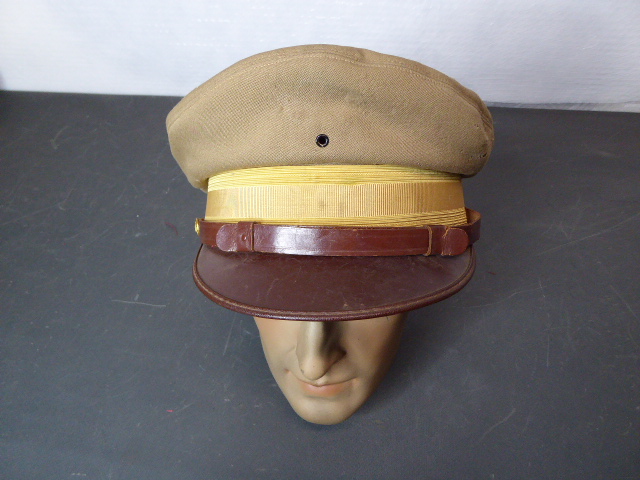 Aus meiner Sammlung gebe ich, eine alte Originale unbekannte Militärische Offiz. Mütze USA? aus Beigen Stoff mit breite Goldlitze ab. Kenner werden es sicherlich wissen was das für eine Mütze ist und wo sie getragen wurde. Der Stoff mit einigen Mottenlöscher, Rechts und Links sind noch zwei geprägte Vergoldete Knöpfe. Alles andere entnehmen Sie Bitte den Fotos. Kann zu jederzeit bei mir besichtigt werden. Privatauktion keine Rücknahme und Garantie.