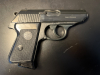 Walther PPK, Nachbau von Erma, Typ 75s, 8mmK. Gebrauchsspuren, siehe Bilder, vor allem im Bereich des Auswurffensters.