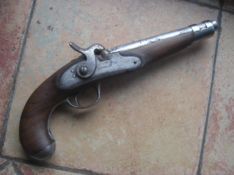 Bayerische Chevauleger Pistole. Da die bayerische Kapazität nicht ausreichte wurde eine größere Anzahl auch in Lüttich gefertigt. Zustand siehe Fotos. Porto Ausland auf Anfrage. Funktion ist einwandfrei, läßt sich spannen und abschlagen.