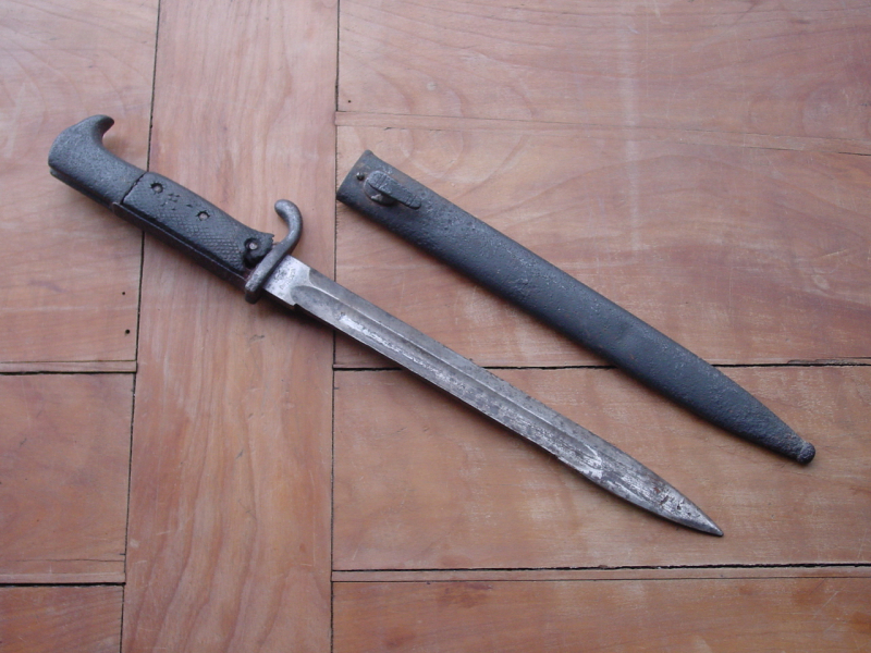 Bajonett Sachsen mit ausgeschliffener Säge, V.C. Schilling Suhl, ungereinigter Fundzustand, Länge insgesamt 40cm, Drücker nicht gängig, Original