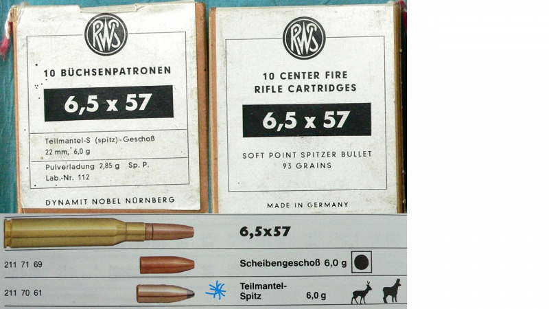 Eine ungeöffnete Schachtel im Kal. 6,5 x 57 vermutlich aus den 60er Jahren.