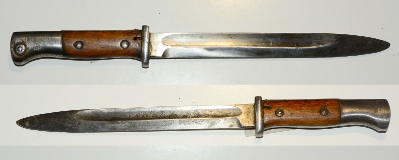 deutches Bajonett 84/98, 1. Weltkrieg, Hersteller "Gottfried Hammersfahr Solingen Foche", Annahme schwach eingeschlagen und nicht eindeutig lesbar "W15" oder "W16", guter Zustand mit Altersspuren, ohne Scheide