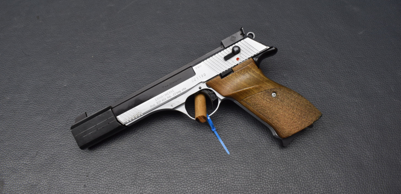 herausnehmbares 10-Schuss Magazin, Holzgriffschalen mit Daumenauflage.