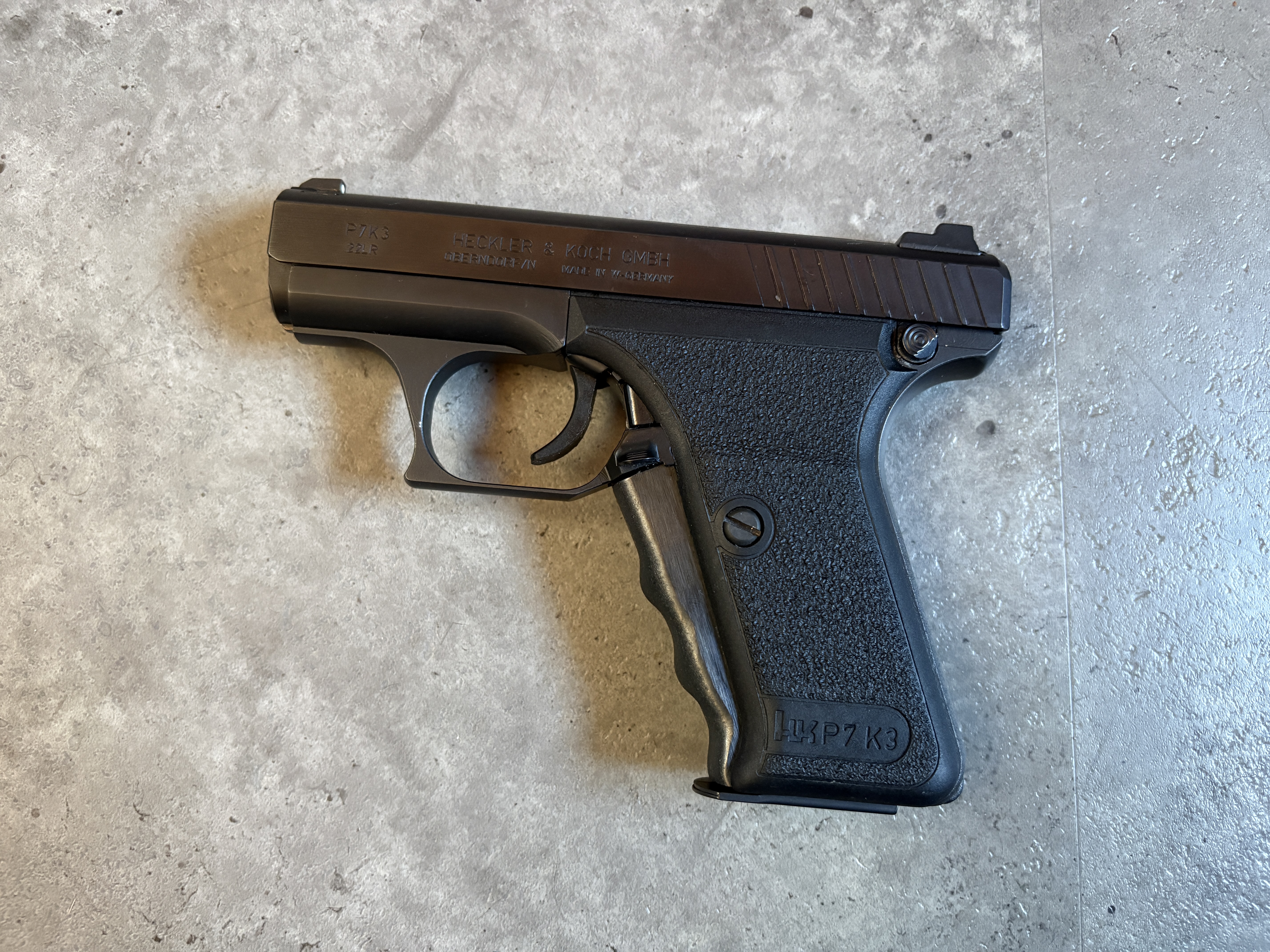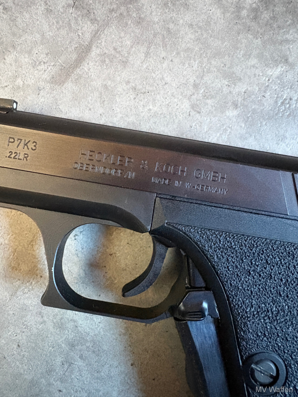Ultra seltene Heckler und Koch P 7 K3 in Kaliber .22lr. Wirklich ein besonderes Stück in einem sehr schönen Zustand wie auf den Bildern zu erkennen. Die Waffe schiesst hervorragend und ist erstaunlich leicht zu Handhaben. Die Waffe mit Wertzuwachsgarantie. Fast nie zu Bekommen. Ideal um die Sammlung zu vervollständigen. Zuschlagen bei der Gelegenheit. Direktversand an Europäische Händler möglich. Fragen Sie bitte nach den Versandkosten. Wie immer völlig unbearbeitet um Ihnen einen ehrlichen Eindruck des Zustandes zu ermöglichen.. Diese Sammelwaffe kann natürlich gerne, nach vorheriger Absprache in Wolfratshausen besichtigt werden