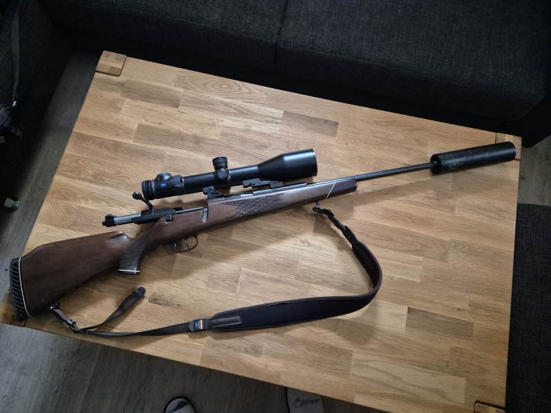 Mauser 66 im Kaliber 8x68S mit Zeiss V8 4,8-35x60 zu verkaufen, inclusive Tasche, Adapter, Riemen und 18 Schuss Munition.