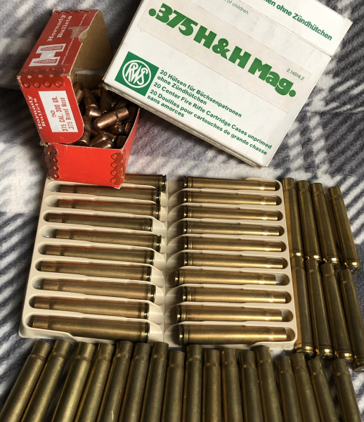 Zum Verkauf kommen aus einem Nachlass im Kaliber .375 Holland & Holland Magnum: 45 Hülsen (20 Stück RWS in Originalverpackung, ungezündert/unbearbeitet und 25 Stück Federal (FC-Bodenstempel, 1xabgeschossen)) plus 50 Geschosse RN-Teilmantel, 300Grain, leicht oxidiert. Das Bild ist Bestandteil der Auktion. Bitte beachten: Ich bin nach BGB eine Privatperson, kein Waffenhändler, kein Unternehmer und schließe hiermit, die nach dem EU - Recht vorgeschriebenen Garantien und Umtausch-rechte ausdrücklich aus. Die Angaben des angebotenen Artikels habe ich nach bestem Wissen und Gewissen gemacht. Vergleiche dazu meine Bewertungen in eGun. Mit Abgabe eines Gebotes nimmt der Bieter den Haftungsausschluss und die AGB's von EGun.de an und akzeptiert, dass es sich bei einer Auktion um eine Versteigerung im Sinne des § 3 Abs. 5 des Fernabsatzgesetzes handelt und dem Höchstbietenden kein Widerrufsrecht zusteht. Da es sich um einen Privatverkauf handelt, gehen Sie mit der Abgabe eines Gebotes eine Kaufverpflichtung ein und verzichten auf jegliche Gewährleistung und Garantie, sowie Rückgabe und Umtausch. Bitte bieten Sie nur dann, wenn Sie ausdrücklich damit einverstanden sind. Angaben von technischen Details sind keine Eigenschaftszusicherung, sondern stellen ausschließlich eine Beschreibung und Darstellung des Gegenstandes dar. Der Versand erfolgt per versichertem Kurierdienst. NO international shipping!!!