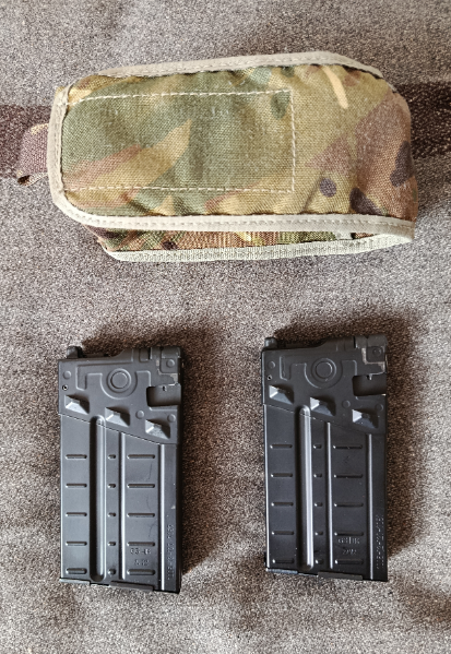 Dazu gibt es eine britische MTP MOLLE Tasche, Modell Sniper. Passend für bis zu 3 G3 Magazine.
