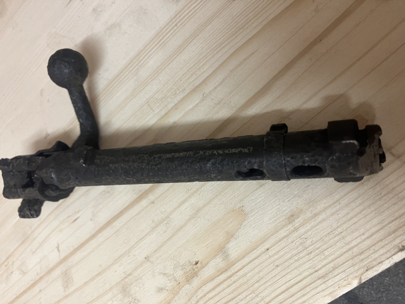 Nur zu Dekozwecken, 45° abgeschliffen und Schlagbolzenkanal verschweißt. Mit Rostumwandler konserviert.