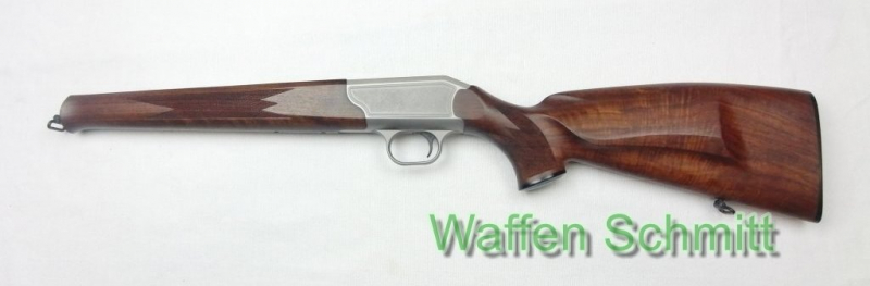 Sie bieten auf eine Repetierbüchse Blaser R93 ohne Lauf und ohne Verschluß. Nußbaumholzschaft mit bayerischer Backe und hellem Verschlußkasten inklusive Abzugssystem, Riemenbügel. Schaftlänge 37cm. Sehr guter Zustand!!!