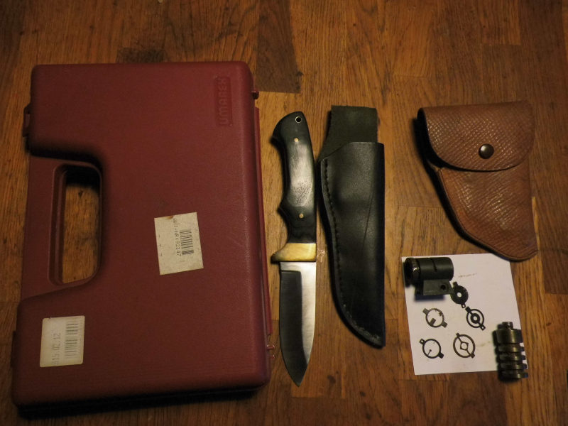 Dachbodenfund ;1.Messer mit Scheide , ein Weihrauch Diopter mit Ringkorne , Unbekannter Abschussbecher ?, Kurzwaffenholster Leder ,mit Gürtelschlaufe, Kurzwaffen Koffer , ohne Inhalt.