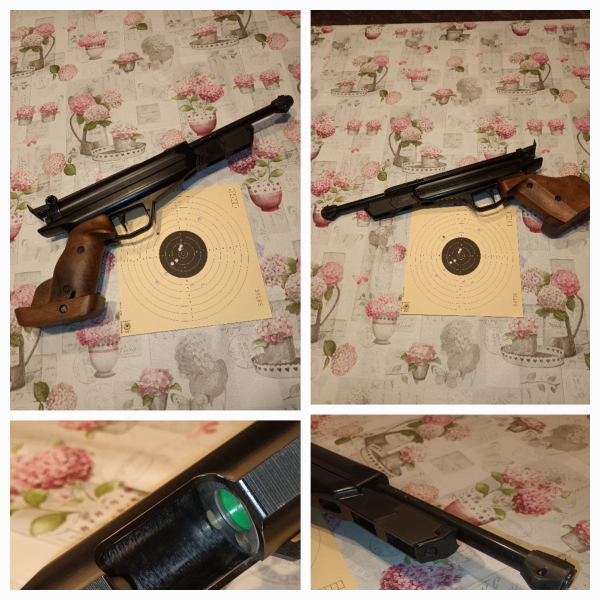 Die Luftpistole hat einen Machgriff und ein sehr gutes Schussbild stammt vom 27.01.2026 und eine gute Lochstanzung (Siehe Zielscheibe)!