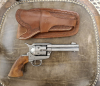 Single Aktion Revolver von DENIX in 4 3/4 Lauflänge. Die Trommel hat nicht die hässlichen zusätzlichen Nuten. 6 Patronen sind dabei. Das Holster gehört mit dazu. Versand ist inklusive.
