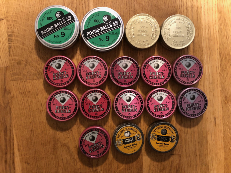 Großes Konvolut an 4,4 mm Rundkugeln für Haenel-Repetierluftgewehre.