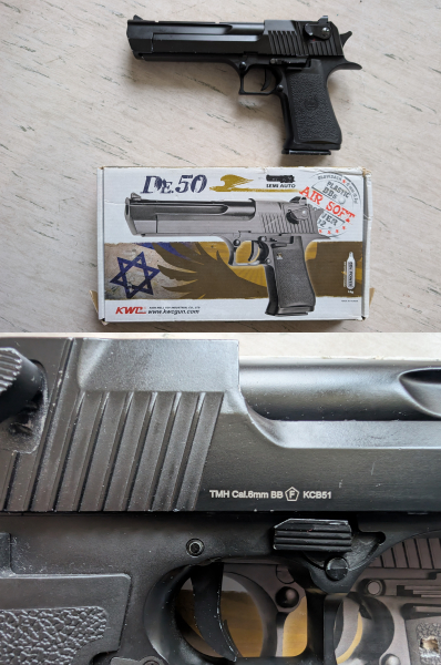 Angeboten wird eine Desert Eagle CO2 Blow Back Pistole in Kaliber 6mm BB. Ein dichtes CO2 Magazin und originale Verpackung dabei. Die Pistole habe ich vor ca. einem Jahr noch geschossen und seitdem nur noch als Vitrine im Schrank gestellt. Privatverkauf, daher keine Rücknahme, Garantie oder Gewährleistung von mir. Da über 0,5 Joulen mit F Zeichen wird ein Alternachweis erforderlich.