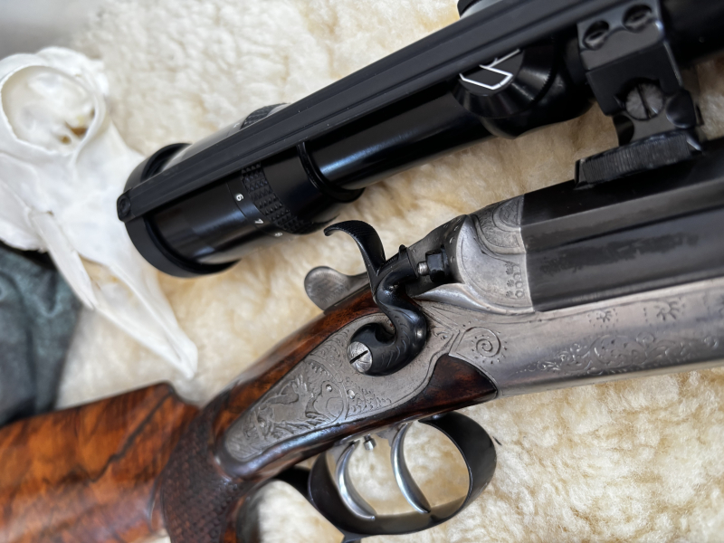 Zum Verkauf steht ein außergewöhnlich schönes Ischler Gewehr in klassischer Kipplauf-Ausführung mit außenliegendem Hahn, gefertigt vom renommierten Büchsenmacher Scheiring in Ferlach. Ein Stück traditioneller österreichischer Büchsenmacherkunst, das Eleganz, Vielseitigkeit und jagdliche Präzision in sich vereint.