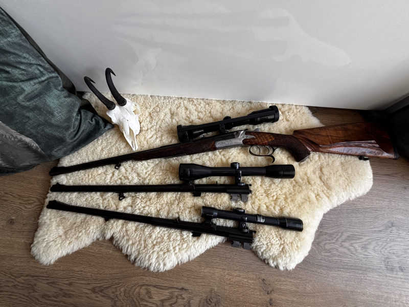 Das Gewehr besticht durch sehr schönes, ausgewähltes Schaftholz und eine stimmige, klassische Linienführung. Verarbeitung und Zustand sind hochwertig und gepflegt – ein Gewehr, das sowohl jagdlich als auch sammlerisch überzeugt. Besonders hervorzuheben ist die außergewöhnliche Ausstattung mit drei Wechselläufen, jeweils mit eigenem Zielfernrohr: