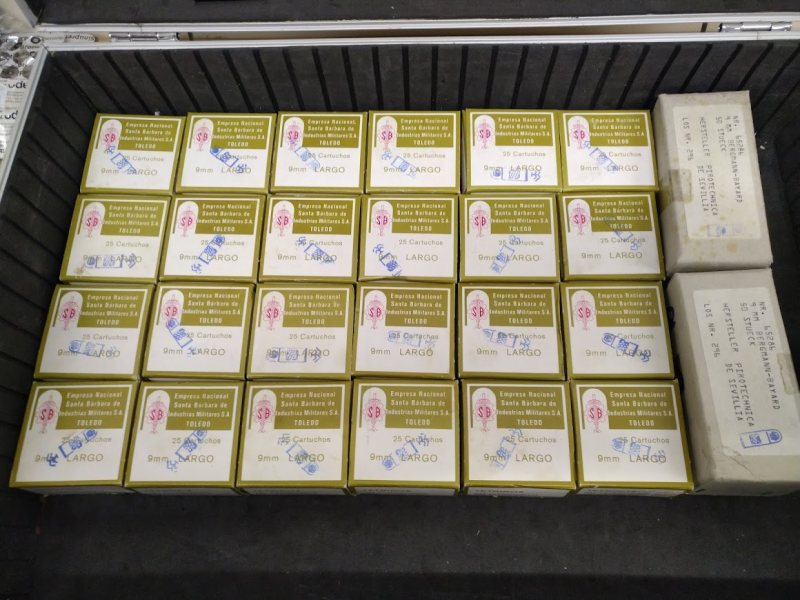 Sie haben die Möglichkeit 700 Schuss Santa Barbara und Pirotechnica de Sevilla 9 mm Largo bzw. 9x23 bzw. 9mm Bergmann Bayard Vollmantel 8,3g/128grs zu erwerben.
