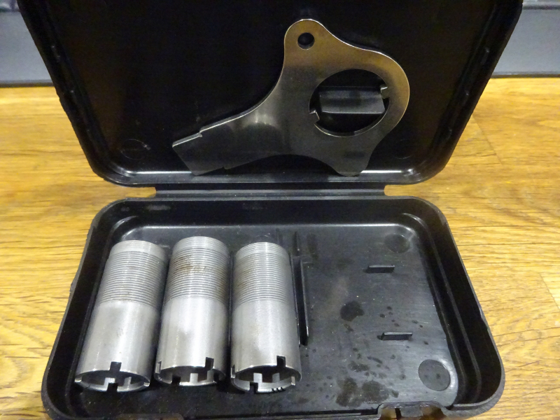 ein Kästchen mit 3 Choke-Einsätzen Kal. 12 ohne nähere Bezeichnung oder Hersteller, siehe Foto und mein egun