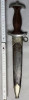 SA Dienstdolch frühe Fertigung des Herstellers "H.G. Haenel Suhl Waffen-u.Fahrrad-Fabrik": brauner Holzgriff mit neusilbernem Hoheitsabzeichen und emaillierter Pastille, perfekt sitzende Griff-Embleme, abgedeckt zu 100% erhalten. Die Scheide aus Eisen, etwas abgegriffen, mit Gebrauchsspuren.
