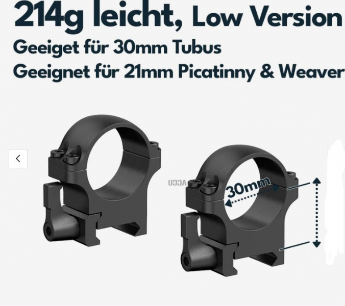 X-Accu Schnellmontage aus hochwertigem Stahl für 21mm Picatinny/Weaver und 30mm Tubus Durchmesser