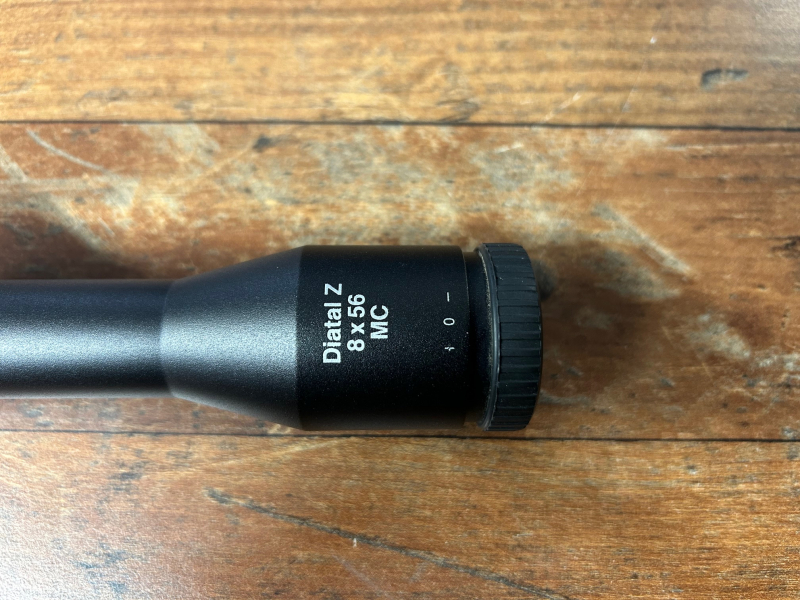 Zeiss Zielfernrohr mit zölligem Mittelrohr (25,4mm), 8x56 MC, Diatal Z, Keine Kratzer auf den Linsen, Leichte Monatagespruren nur auf der Unterseite des Mittelrohres, da waren die Ringe geklebt, sonst sehr guter Zustand.