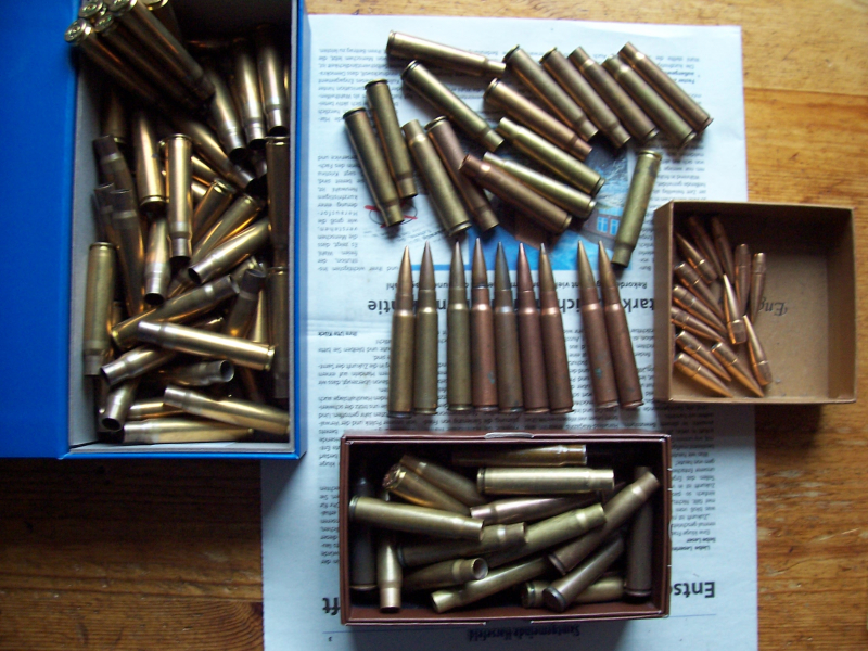9 DEKO Patronen sS , deutsch 2. WK . Ausserdem 32 Hülsen deutsch 2.WK ( Zdh. optisch intakt ) , 50 abgefeuerte Hülsen ( FNM 72-6) und 16 Hülsen , unterschiedliche Länder . Ausserdem 15 Geschosse sS ( Nachkrieg ) .
