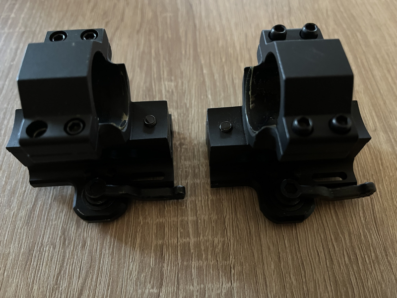 Biete 2 Zielfernrohrmontagen Blockmontage Schnellverschluss , Rohrdurchmesser 25,4 mm , Gesamthöhe 60 mm , Schiene 22 mm , von Schiene bis Mitte Rohr 40 mm , gebraucht aber in einem guten Zustand , Privatverkauf keine Garantie oder Rücknahme