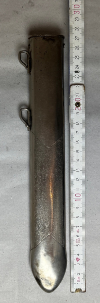 Scheide zum Reichsarbeitsdienst, RAD Hauer M 37 für RAD-Führer. Scheide aus Eisen vernickelt, leichte Patina, keine Seschädigungen oder Beulen, Grösse ca 27 x 4,5 cm., Innenmaße siehe Bilder. RAD Führer Scheide im guten Zustand. Gesuchtes Ersatzteil !