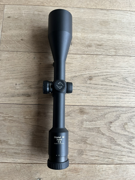 Zeiss Diatal 7x50 Absehen 4 mit leuchtpunkt und Innenschiene, Technik top, Glas klarer Durchblick, Objektiv und Okular ohne kratzer oder Einschlüsse. Bei den Variablen ZF ist sowieso die Vergrösserung meistens zw 6 u 8 eingestellt und bei fester Vergrösserung ist die Dämmerungsleistung besser. Achtung///// Original Blaser Sattelmontage ist nicht Bestandteil der Auktion, kann für 130€ erworben werden///////