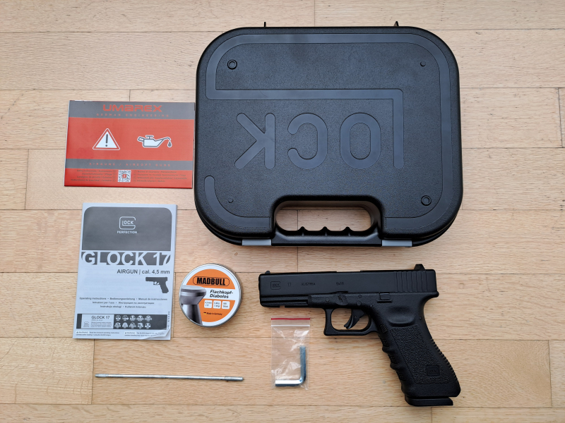 Sie bieten auf eine Glock 17 Gen. 3 CO2 Luftpistole Kal. 4,5 mm Diabolo/BB inkl. Glock Pistolenkoffer. Die Glock 17 Generation 3 CO2-Luftpistole kommt im Kal. 4,5 mm - und schießt Diabolos sowie Stahl-BBs. Der Betrieb der Luftpistole erfolgt mit einer handelsüblichen 12g CO2-Kapsel. Als Munition können sowohl Stahl-BBs als auch Diabolos im Kaliber 4,5 mm verwendet werden. Die Magazintrommel bietet Platz für 8 Schuss.