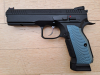 Sie bieten auf eine KJ Works CZ Shadow 2 Vollmetall CO2 BlowBack 6mm BB schwarz. Diese kommt zusätzlich mit schwarzen Griffschalen, einem GBB Magazin und einem AMOMAX Holster rechts in schwarz. Ich verkaufe diese Pistole aus meiner Sammlung. Sie wurde nur zwei Mal geschossen, ist also neuwertig und wurde nur im Originalkarton aufbewahrt. Mit den beiden mitgeliefertem Magazinen kann sie wahlweise mit einer 12 g CO2 Kapsel oder mit Gas betrieben werden. Die von KJ Works und ASG in Zusammenarbeit entwickelte Airsoftnachfertigung der CZ Shadow 2 ist dank der CZ-Lizenz mit sämtlichen sauber eingearbeiteten Originalmarkings ausgestattet. Hergestellt ist die maßstabsgetreue Nachbildung mit CO2-Blow-Back Schusssystem in robuster Vollmetallbauweise. Dies sorgt für eine hohe Zuverlässigkeit sowie Robustheit im Einsatz und macht die Shadow 2 für Spieler aber auch Sammler sehr interessant. Lieferumfang: