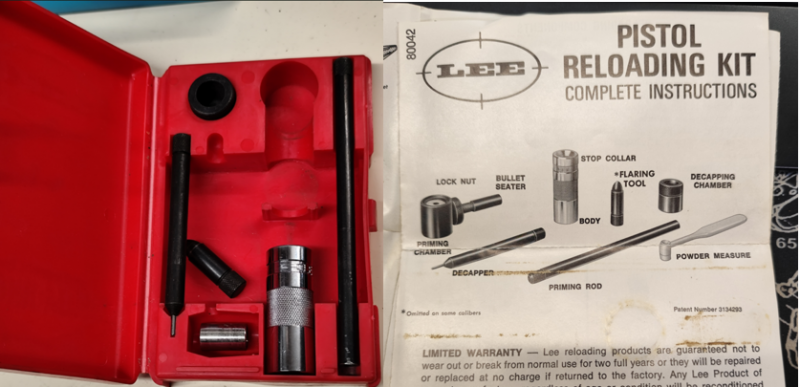 Die fehlenden Teile sind dem Bild zu entnehmen, der Satz scheint auch für .38 zu sein, diese Hülse passt fast am besten rein.