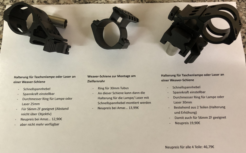 Halterung für Lampen (z.B. von Surefire ) Laser IR-Strahler (z.B. von Laserluchs Maximtac Gutzeit ) Taschenlampe etc. mit einem Durchmesser von 24,6/ 25mm oder 30mm auf einem Zielfernrohr mit 30mm Tubus Mittelrohr