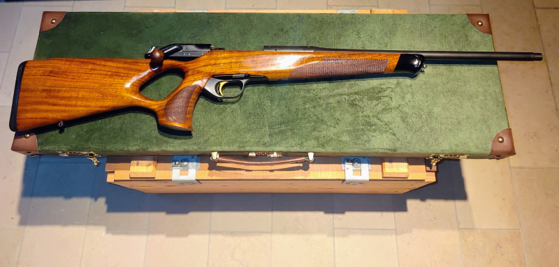 Blaser R8 Success.Traumwaffe mit schönem Lochschaft , goldenem Abzug und Kammerstängelkugel aus Holz. Der 6,5 Creedmoor Kurzlauf hat 51cm und ein M15 Mündungsgewinde. Die Waffe schießt mit und ohne Schalldämpfer ( kann mit erworben werden) sehr angenehm und hat ein erstklassiges Schussbild.