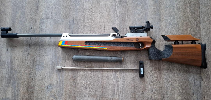 Zustand: optisch erkennbare Gebrauchsspuren. Die CO2 Flasche ist schon seit Jahren nicht mehr im Gebrauch, so dass die aktuelle Schussbereitschaft nicht überprüft werden kann. Da im letzten Wettkampf (30 Schuss) die Anzahl der Probeschüsse genau zu überlegen war, ist davon auszugehen, dass die Dichtungen ersetzt werden sollten.