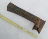 Die Schafttülle ist mittig gebrochen und wurde einst neu angefügt. Die Tülle mit Fehlstelle.An der Schneide eine Fehlstelle. Sehr schwer und massiv gearbeitet.