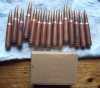15 Patronen mit verk. Stahlhülsen , in der orig. Schachtel . 14 x P154 Los 4 39 und 1 x Los 23 39 . Also fast stimmig .