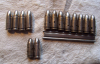 14 Exerzierpatronen 9mm , davon 8 Stück ( P Ex 39) auf einem Ladestreifen . Nur 1 Patrone Nachkrieg ( Geco) .