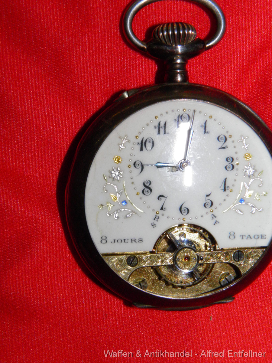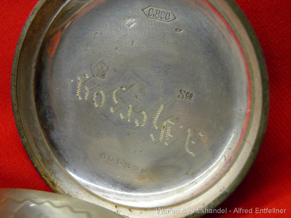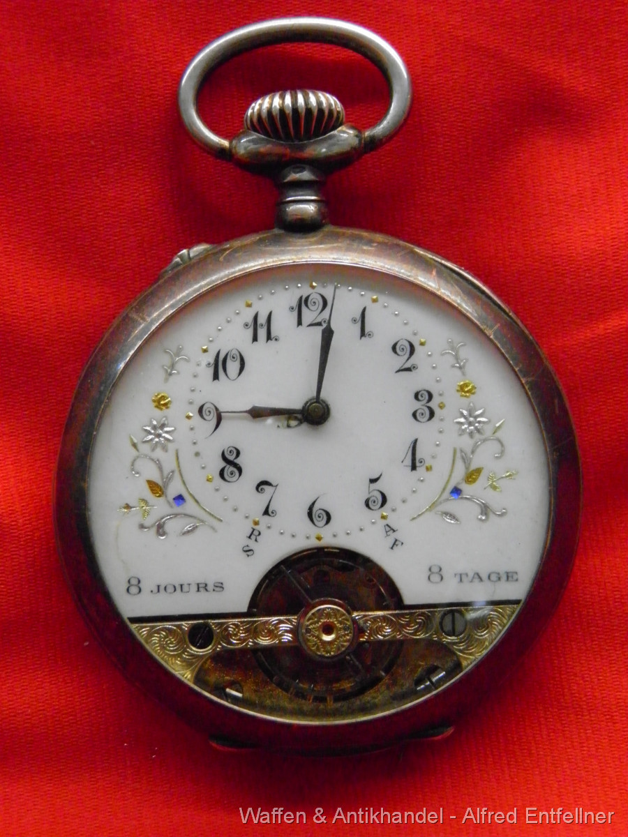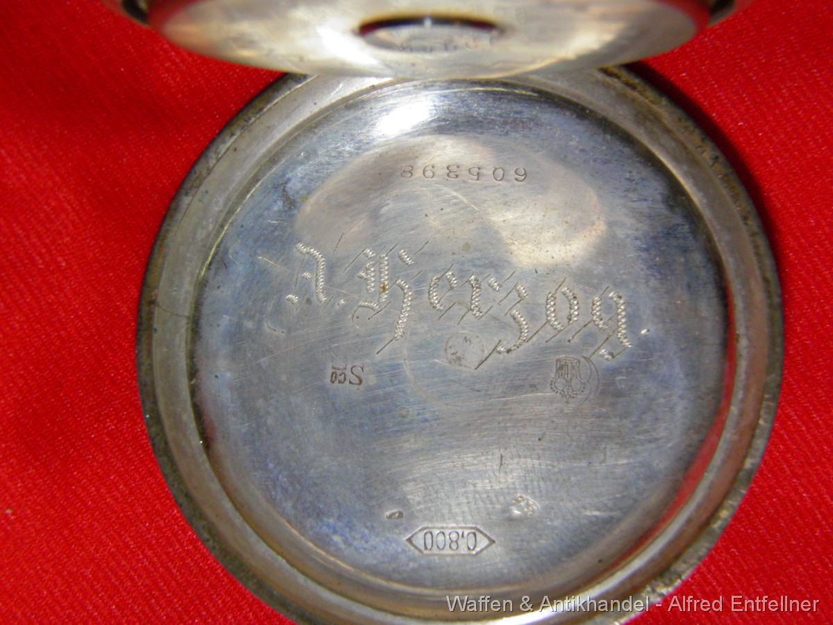 Schöne alte Herren Frackuhr, 800er Silbergehäuse. Feder gut; lässt sich aufziehen Werk läuft.