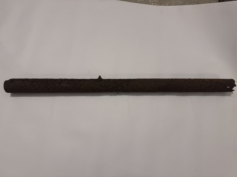 Schrott aus dem Kessel,Leeres Rohr einer Panzerfaust 100cm nur noch als Belegstück