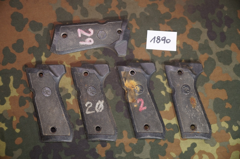 Achtung aufgepasst: sie bieten hier auf 5 Stück Griffschalen (linke Seite) für die Beretta 92 original von der US ARMY. Zustand, siehe Foto. Sie erhalten genau die auf dem Foto abgebildeten Ersatzteile. Beachten Sie auch unsere weiteren Auktionen.