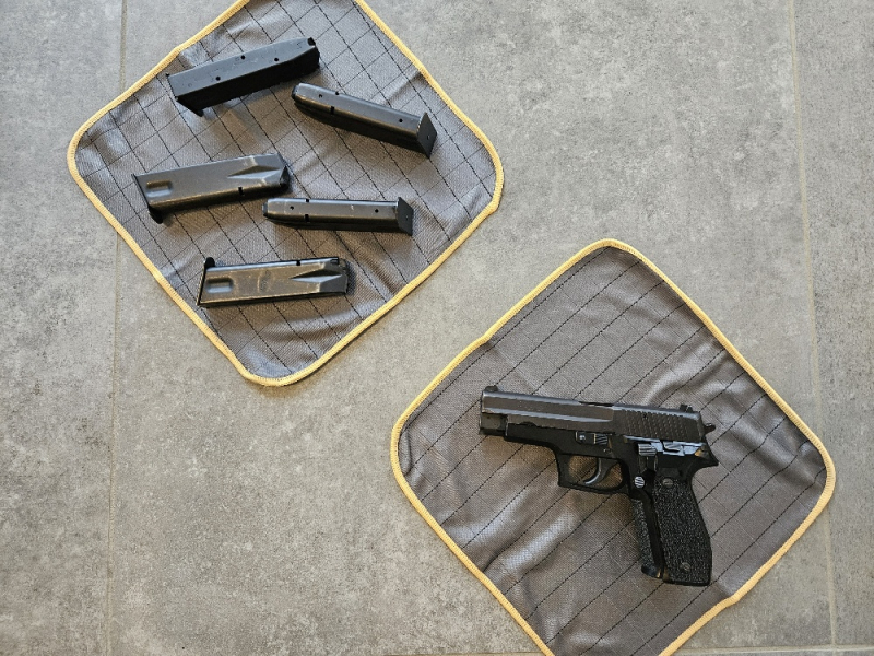 Zum Verkauf kommt eine halbautomatische Pistole des Herstellers SIG Sauer im Kaliber 9 mm Luger Made in Germany. Es handelt sich um das Modell P226 mit Single-Action/Double Action Abzugsmechanismus. Die Lauflänge beträgt ca. 112 mm. Die Waffe weist leichte Gebrauchsspuren auf, befindet sich jedoch sowohl optisch als auch technisch in einem guten Zustand. Zum Lieferumfang gehören fünf 15-Schuss Magazine. Bei Fragen gern eine kurze E-Mail. Viel Spaß beim Bieten.