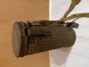 Originaler deutscher Gasmaskenbehälter M38 aus dem Zweiten Weltkrieg, inklusive Gasmaske und Filter.