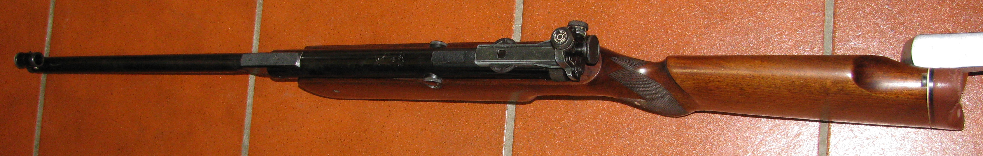 Das Gewehr lässt sich spannen und abschlagen, Druck aber sehr schwach, das Diabolo verlässt nicht den Lauf
